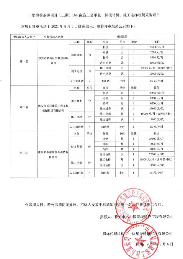 十里梅香茶源項(xiàng)目(三期)164畝施工總承包一標(biāo)段塔機(jī)、施工電梯租賃采購(gòu)中標(biāo)公示
