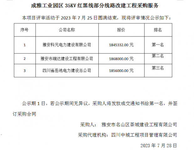 成雅工業(yè)園區(qū)35KV紅黑線(xiàn)部分線(xiàn)路改建工程采購(gòu)服務(wù)