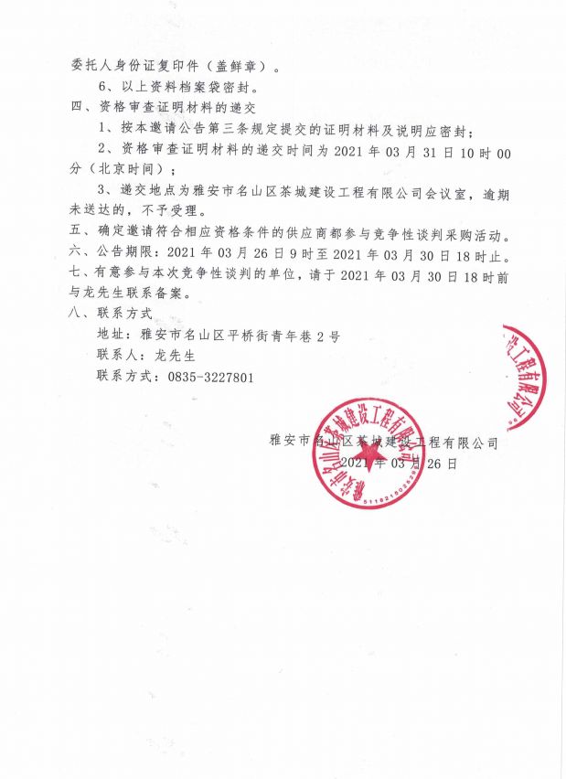 雅安市名山區(qū)皇茶大道安置房項目 護窗圍墻欄桿競爭性談判邀請公告